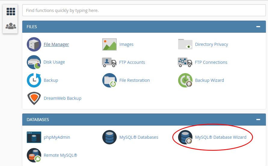 - Ulogujte se u cpanel gde vam se nalazi novi domen i kliknite na ikonicu „MySQL Database Wizard“ i pratite uputstva