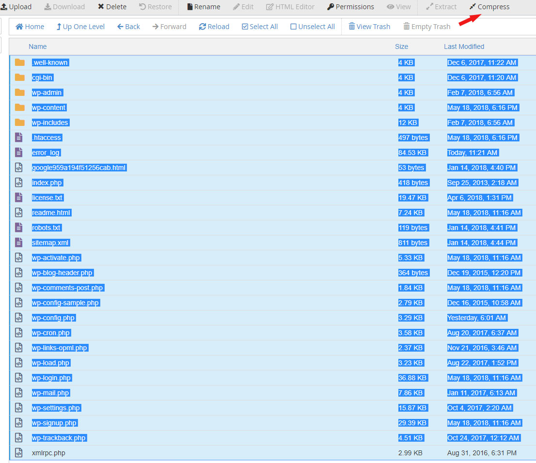 - Selektujte sve fajlove i pritisnite dugme „Compress“ u desnom gornje uglu.