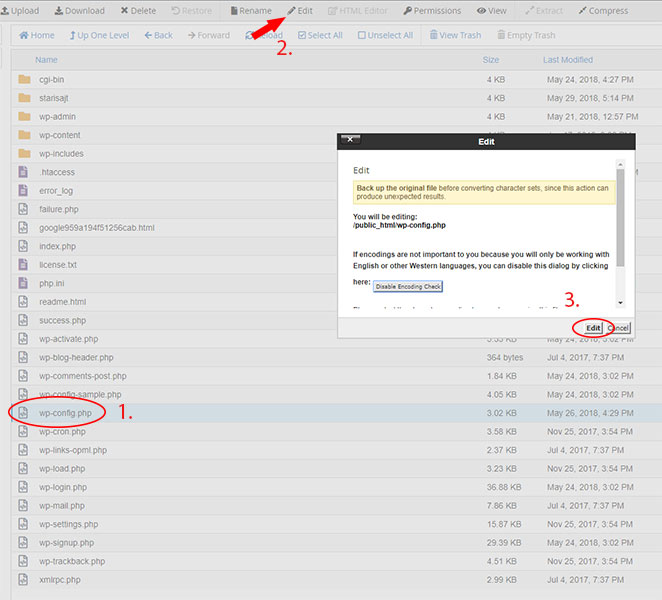 - Proverite koja baza je dodeljena sajtu i zapišite na nekom papiru. Proveravate tako što kliknete na fajl wp-config.php.
